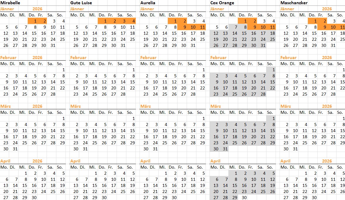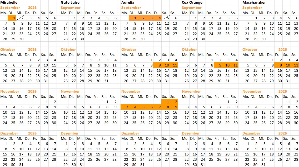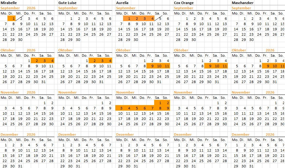 Wir bemühen uns, den Kalender stets aktuell zu halten.