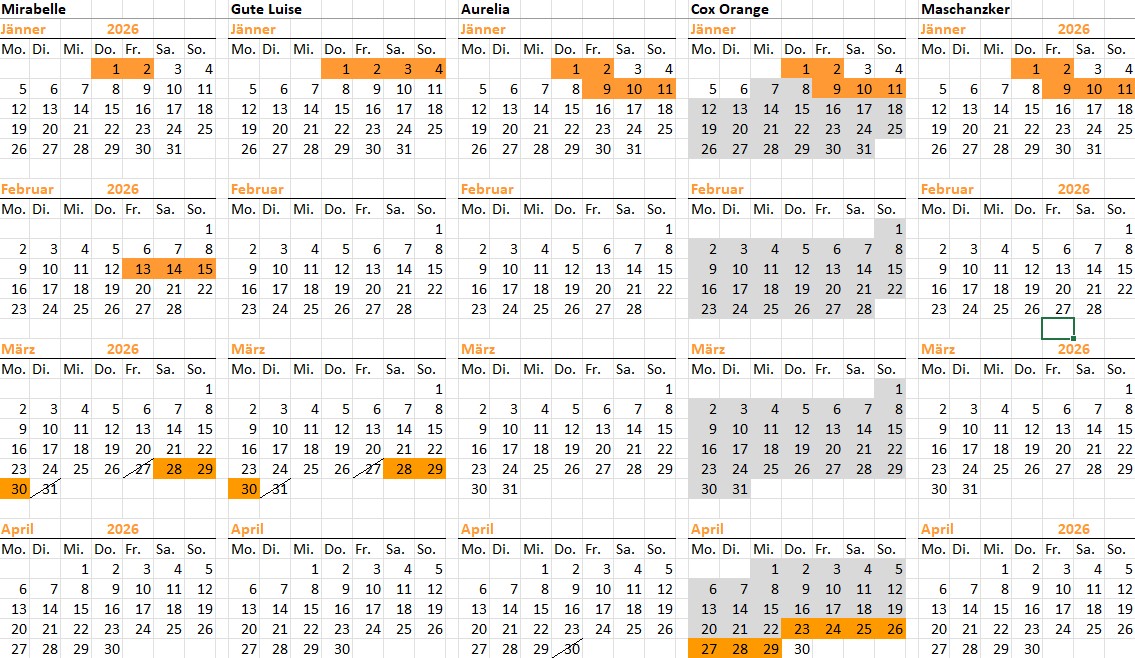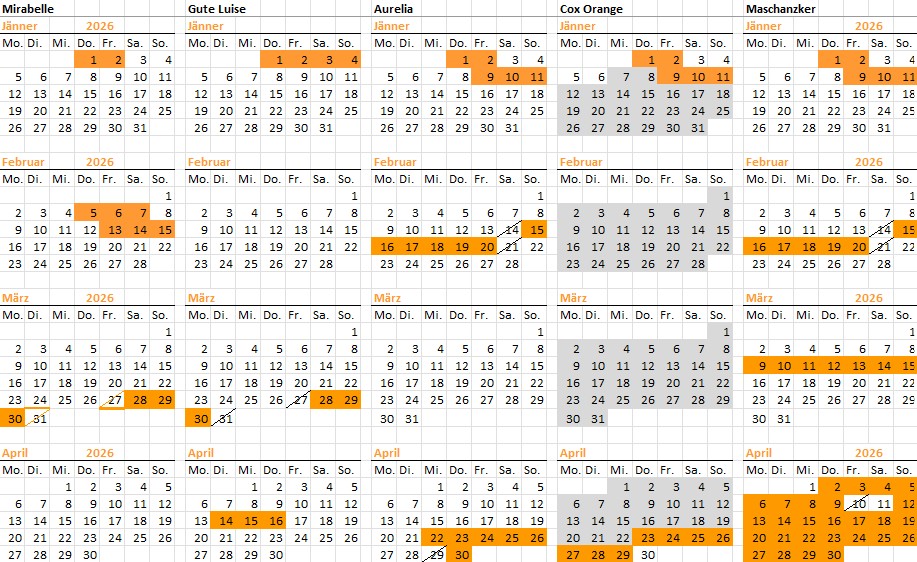 Bitte beachten Sie, dass in diesen Kalender nur fix gebuchte Zeiten eintragen sind.